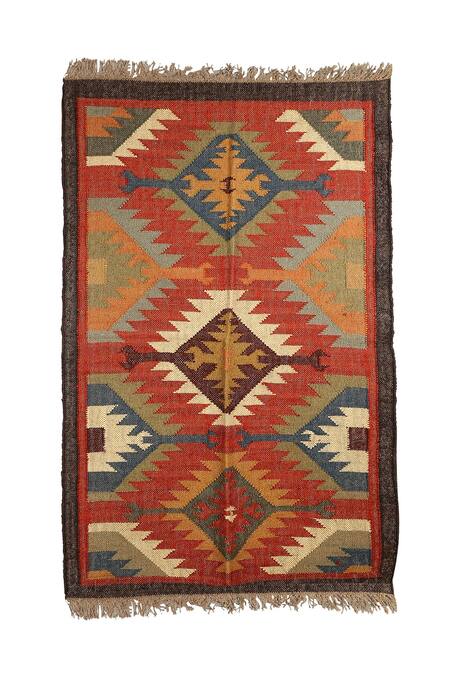 Product Finish: Kilim, Hand woven geometric pattern, Dimensions (in ft): 3 x 5, Weight (in kgs): 1.7, Thickness (in mm): 5, Note: Only the rug shown in the image is being sold