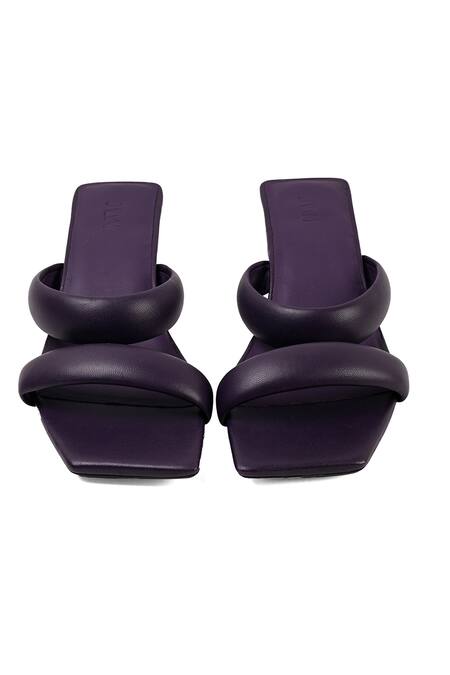 Deep purple cone-heel slip-on featuring a structured cushioned strap
