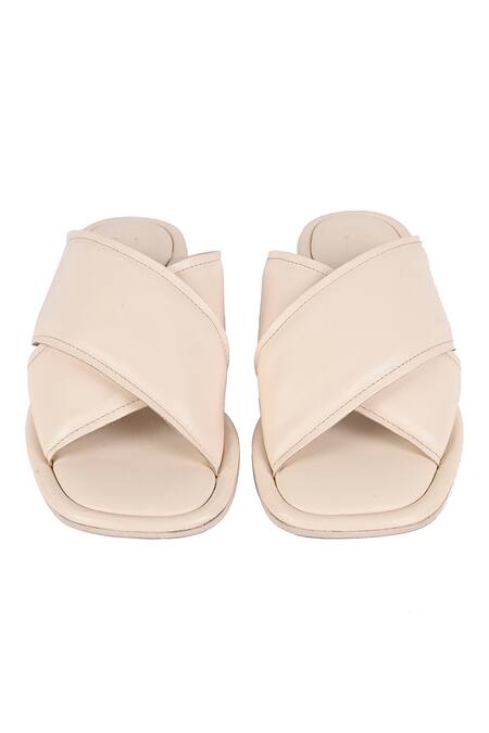 Ivory angular heels featuring foam padded footbed and padded cross straps