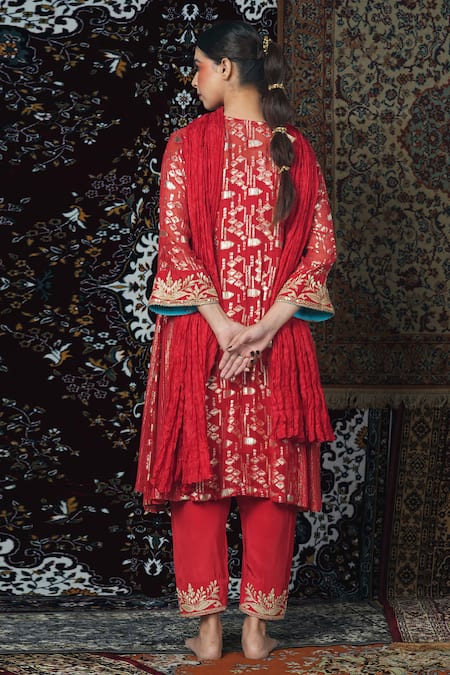 Buy_Jyoti Bansal_Red Georgette, Silk, Crepe Embroidery, Tassels, Mirrors Dori Yoke Kurta Set_Online_at_Aza_Fashions