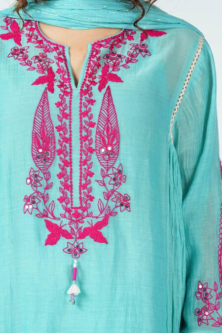 Buy_Jyoti Bansal_Blue Chanderi, Cotton Embroidery Ruhaniyat Dori Placement Tunic Salwar Set _Online_at_Aza_Fashions