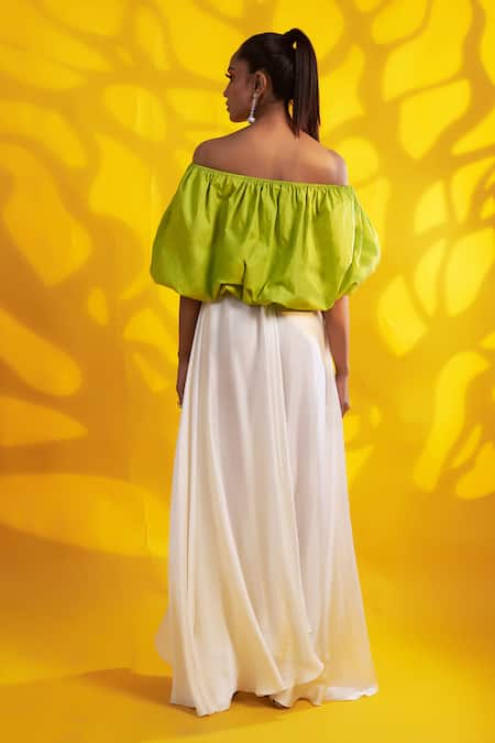 Green off-shoulder balloon top crafted in cotton