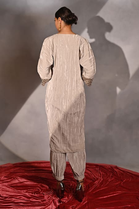 Thread and badla embroidery on the cuffs, Pleated design on the kurta, Tapered silhouette of the salwar