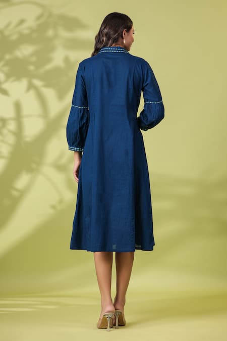 Blue Cotton Embroidery Collared Dress