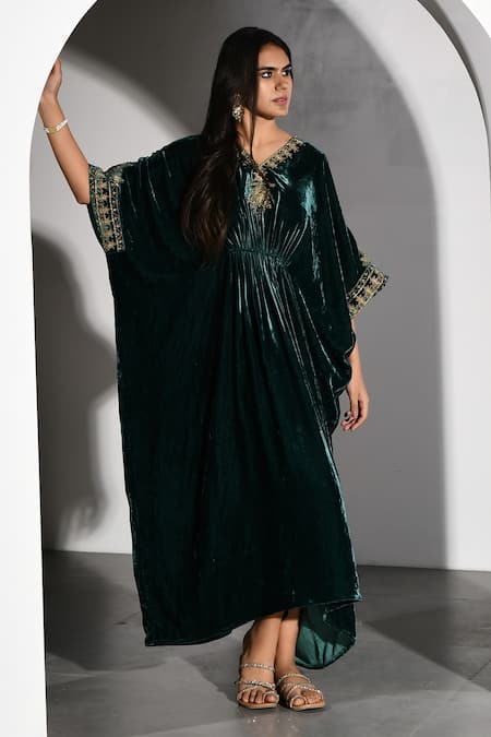 Green Velvet Embroidery Zari V Neck Neckline Kurta