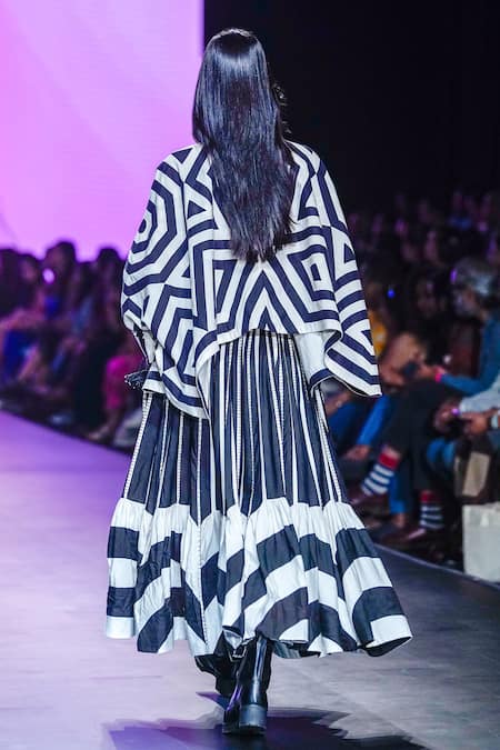 Black Cotton Arch Striped Patch Work Embroidered Skirt