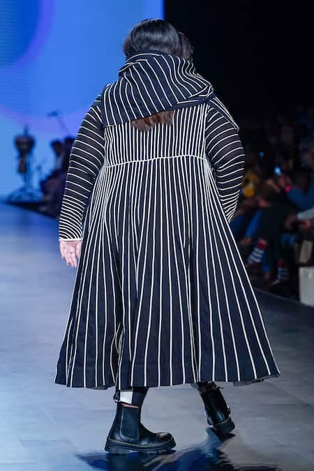 Black scarf crafted in kala cotton featuring candy striped cording applique detail in contrasting white tone