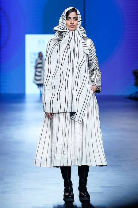 Buy_KA-Sha_Black Cotton Applique Round Neck Pin Striped Midi Dress _at_Aza_Fashions
