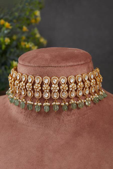 Green Riddhima Moissanite Polki Embellished Choker Necklace