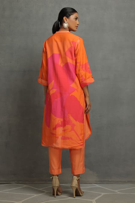 Buy_Kahani Lush_Orange Cotton, Silk Sequins, Embroidery Blossom Print Shirt Kurta And Pant Set _Online_at_Aza_Fashions