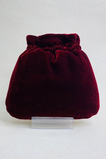 Wine velvet potli bag featuring zari floral embroidered motifs and sequin work