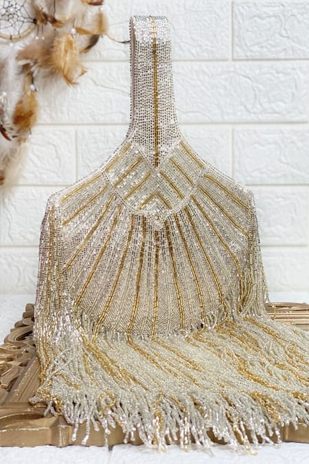 Sequin tassel fringe detail, Magnetic closure for easy access, Bead embellishments adding texture