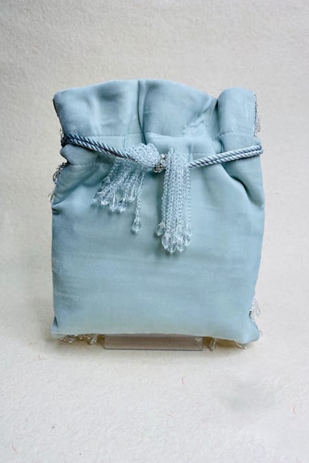 Buy_Kainiche By Mehak_Silver Embellishment Ritz Bead Drop Potli Bag With Sling _Online_at_Aza_Fashions