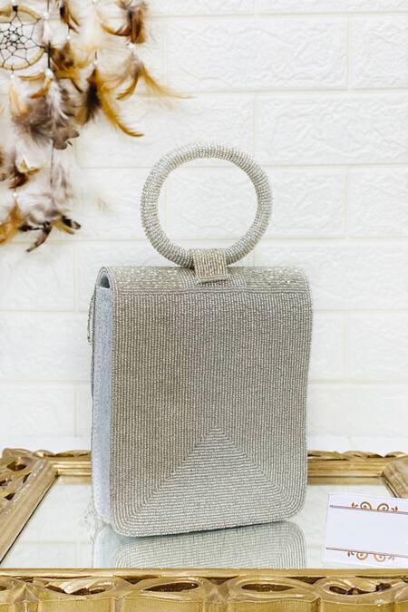 Silver Sequin Embellished Square Bag