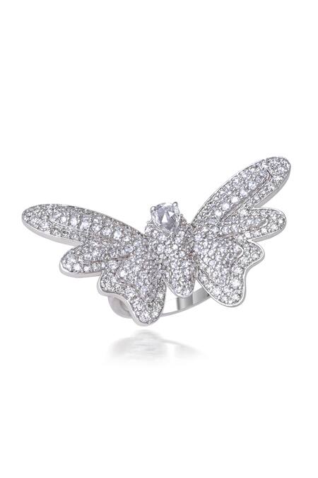 White Imitation Diamonds 18kt Gold Butterfly Cut Pave Ring