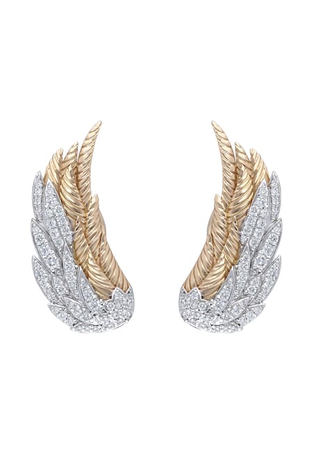 Gold earrings featuring angel wing design embellished with full cut diamonds