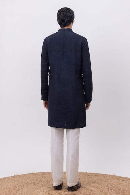 Navy Silk, Cotton Embroidery Flamingo Kurta And Pant Set