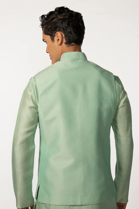 Intricate diamond pattern embroidery, Cutdana and thread work detailing, Mandarin collar design