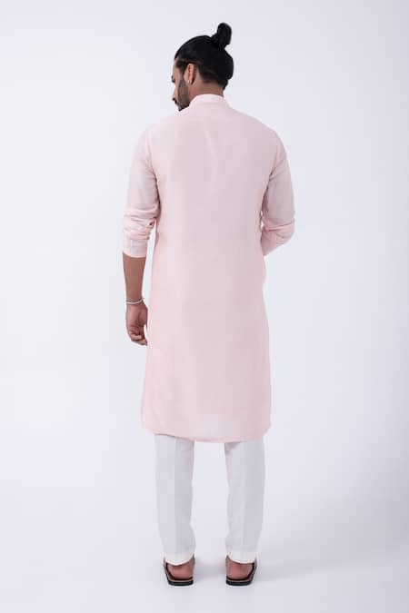 Pink kurta featuring mirrorwork embellishments and swirl threadwork patterns. Paired with a cotton silk pyjama.