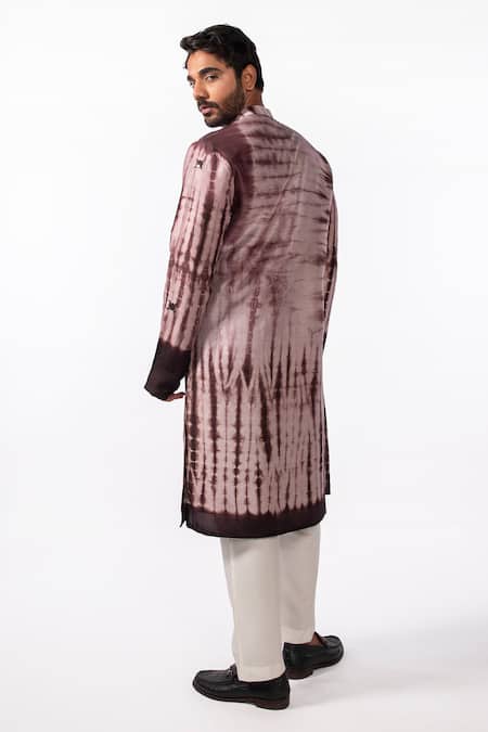 Brown Bamboo, Silk, Cotton Mirrors Tie Dye Kurta Set