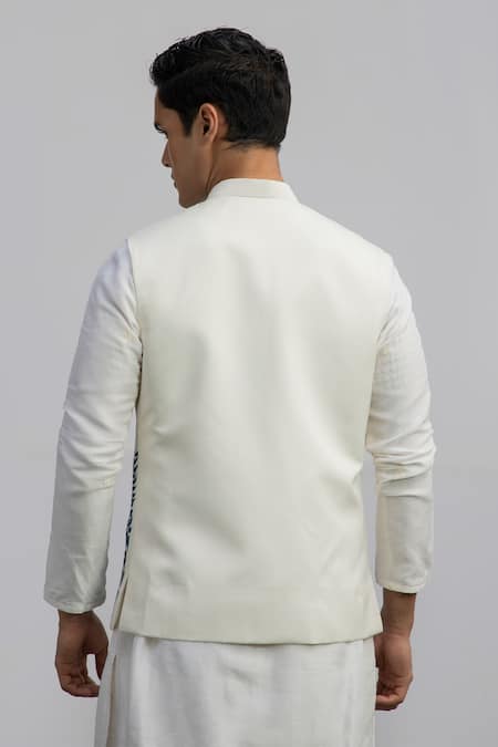 Intricate thread embroidery on the front, Contrast detailing at the hem, Minimalist design with a focus on craftsmanship