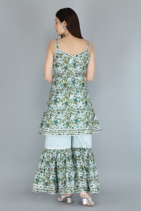 Buy_Kalakaari By Sagarika_Blue Cotton Embroidery, Gota Patti Sweetheart Flower Print Kurta And Sharara Set _Online_at_Aza_Fashions