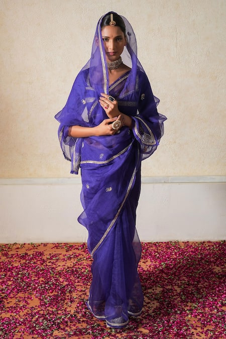 Purple Organza, Gulkhera And Aari Embroidered Saree With Blouse
