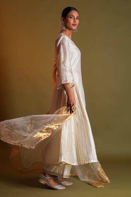 Ivory , , Gota Mogra Striped Side Kali Kurta Set