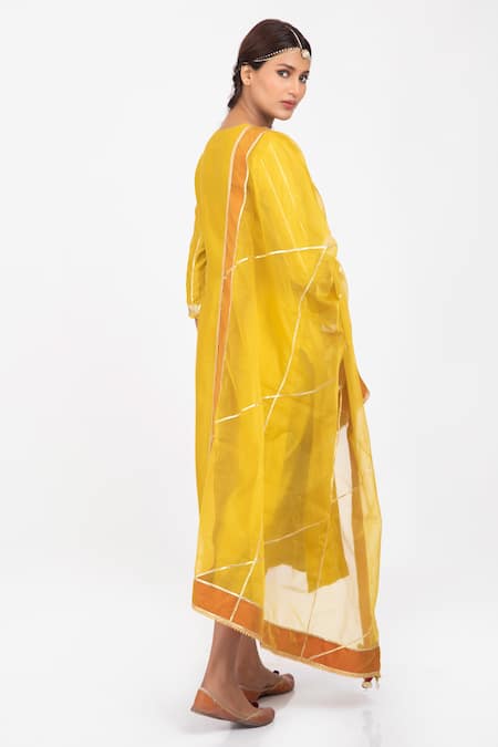Buy_Kalakari by Akanksha_Yellow Silk Chanderi And Organza Gota Patti Round Kurta Pant Set _at_Aza_Fashions