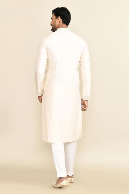 Ivory kurta featuring all-over butti embroidery with cutdana and sequins. Paired with matching ivory pant for a complete look.