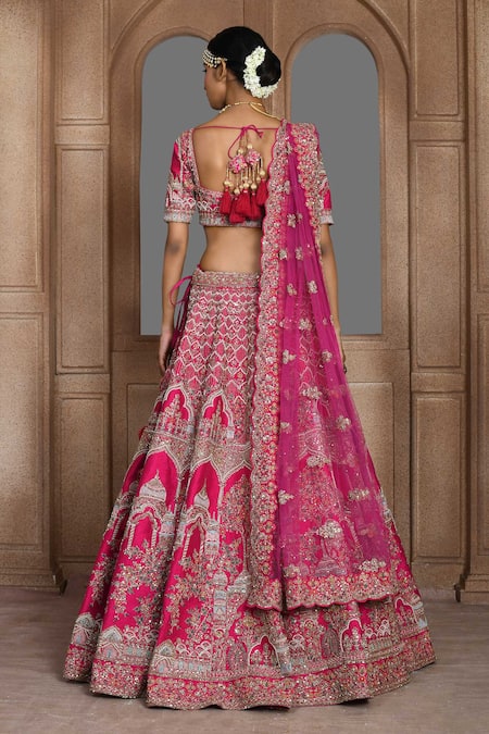 Pink Silk Zari, Embroidery Sweetheart Neck Lucknowi Zardozi Bridal Lehenga Set