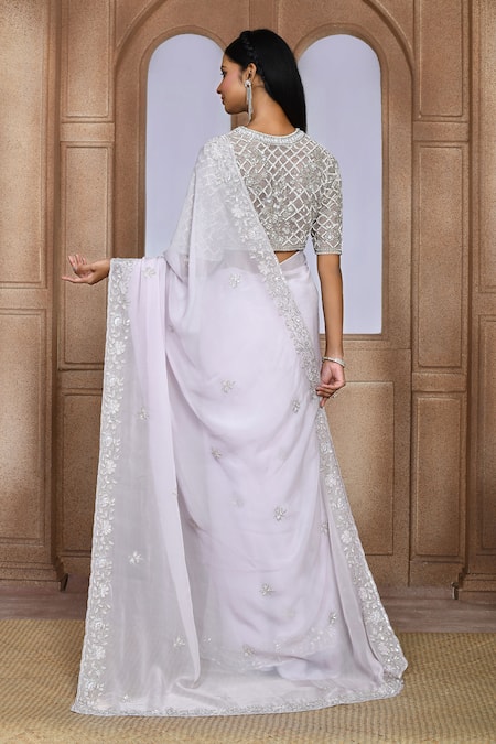 Lilac organza saree featuring tonal sequin, cut dana, beads work & embroidered pallu