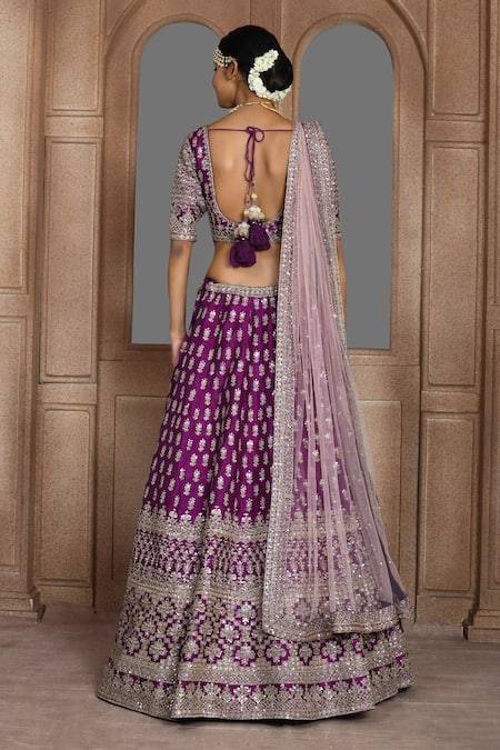 Buy_Kalighata_Purple Silk, Net Sequins, Zari Swastik Thread Embroidered Bridal Lehenga Set _Online_at_Aza_Fashions