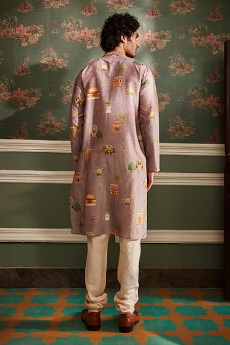 Purple Chanderi Miniature Arnav Print Kurta Set
