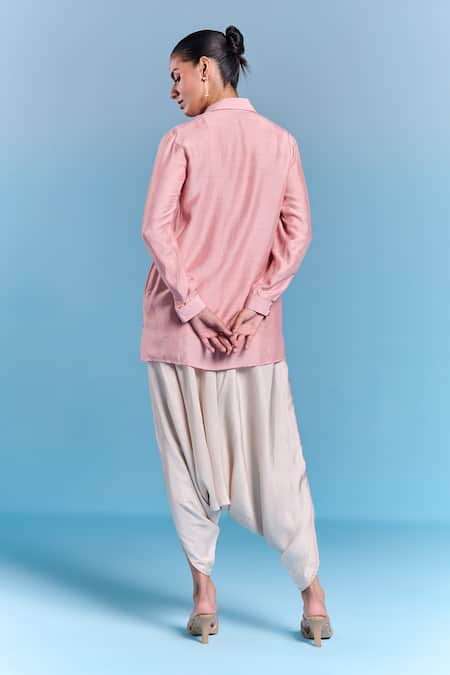 Pink Silk Embroidery, Sequins Collared Era Shirt