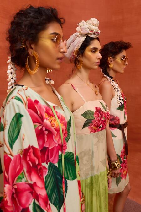 Floral print design on the dress, Sheer cape with balloon sleeves, Relaxed fit for comfort