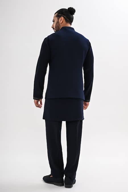 Navy Crepe Embroidery Indigo Grove Nehru Jacket And Kurta Set