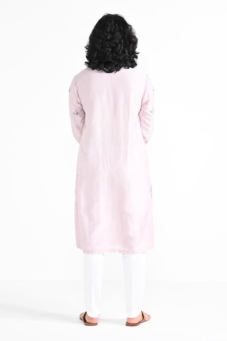 Buy_Kalpana Naik_Purple Bemberg, Silk, Cotton Embroidery Lilac Hand Kurta Set _at_Aza_Fashions