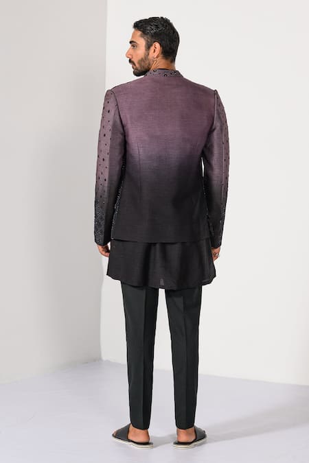 Black Bemberg, Silk, Cotton Embroidery Midnight Mauve Ombre Bandhgala Set