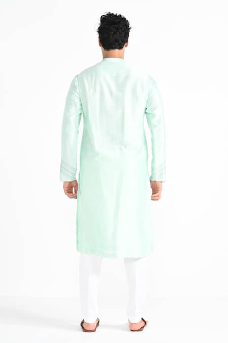 Buy_Kalpana Naik_Mint Chanderi Silk, Cotton Embroidery Mist Green Hand Kurta Set _Online_at_Aza_Fashions