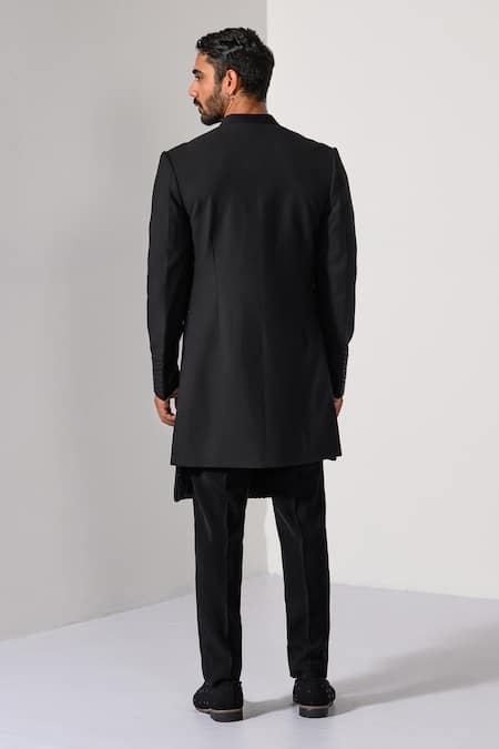 Black Crepe Embroidery Onyx Overlay Pintuck And Cutdana Achkan Trouser Set