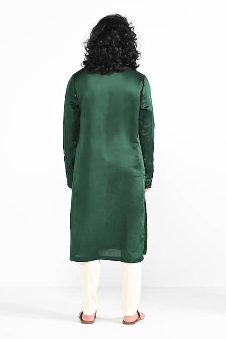 Buy_Kalpana Naik_Green Linen, Satin, Cotton Embroidery Sacred Hand Kurta Set _Online_at_Aza_Fashions