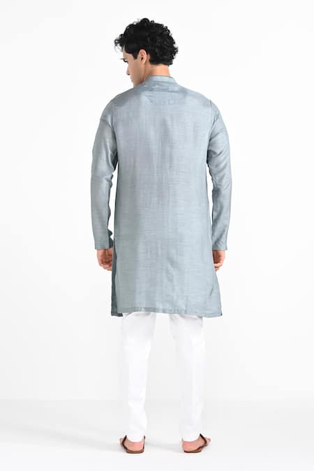 Shop_Kalpana Naik_Slate Bemberg, Silk, Cotton Embroidery Grey Hand Kurta Set _at_Aza_Fashions