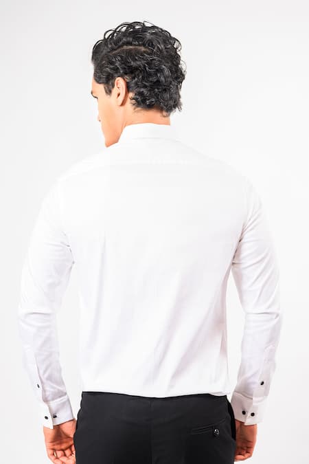 A white Giza cotton stretch shirt featuring V pintucks on the front placket and a classic collar.