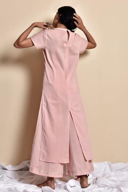 Buy_Kanika Sharma_Pink Cotton Band Collar Embroidered Kurta Palazzo Set _Online_at_Aza_Fashions