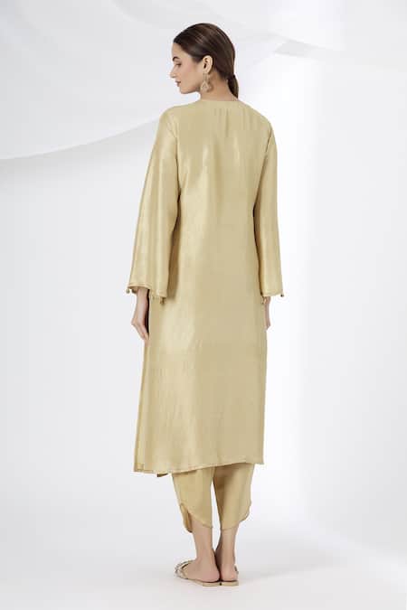 Gold Kurta Foil Summersilk Pant Crepe Notched Embroidered Silk And Dhoti Set
