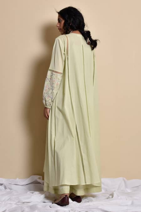 Buy_Kanika Sharma_Green Inner Doby  Jacket And Pant Flared Set With Embroidered _Online_at_Aza_Fashions