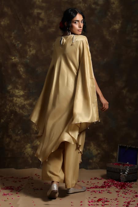 Buy_Kanika Sharma_Gold Silk, Crepe Round Kaftan Tunic And Palazzo Set _Online_at_Aza_Fashions
