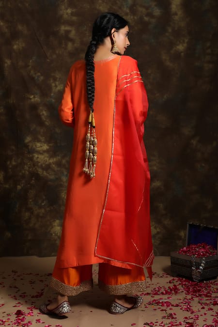 Buy_Kanika Sharma_Orange Silk, Organza, Crepe V Neck Kurta Palazzo Set_at_Aza_Fashions