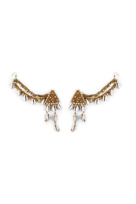 Studded with pearls and shells, Unique ear chain design, Intricate bead and sequins work